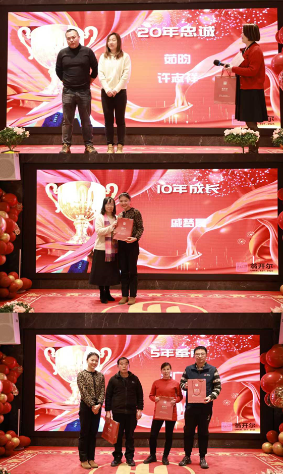 晚宴期間,公司給5-10-15-20-25年忠實(shí)服務(wù)的員工頒獎(jiǎng)并贈(zèng)送禮品,表彰他們多年如一日在各自工作崗位上的辛勤付出與卓越表現(xiàn),向他們表達(dá)誠(chéng)摯的敬意與衷心的感謝。